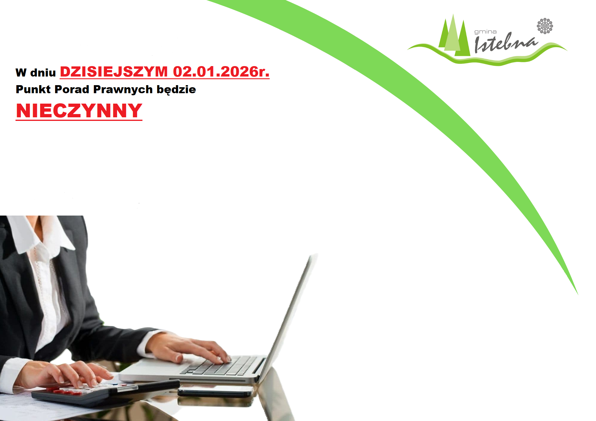 Uprzejmie informujemy, że w dniu dzisiejszym 02.01.2026 r. Punkt Porad Prawnych będzie nieczynny.