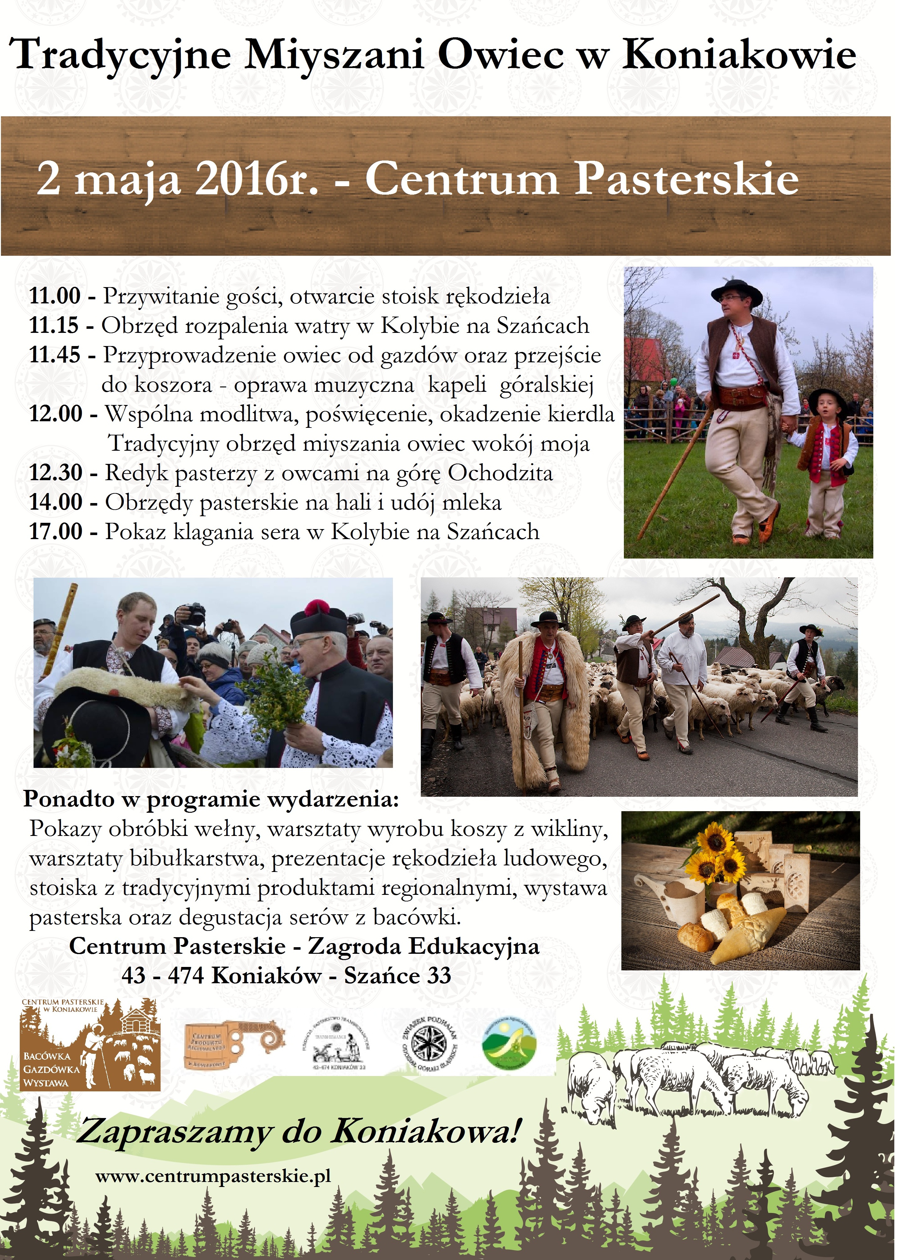 Serdecznie zapraszamy na tradycyjne Miyszani Owiec w Koniakowie! Jak co roku przybyli goście będą mogli zobaczyć zakorzenione w naszej kulturze obrzędy związane z wiosennym rozpoczęciem wypasu na halach. Imprezie towarzyszyć będą stoiska z rękodziełem, góralska muzyka oraz pokaz klagania sera! Uroczyste rozpoczęcie wydarzenia o godzinie 11.00.