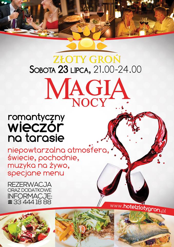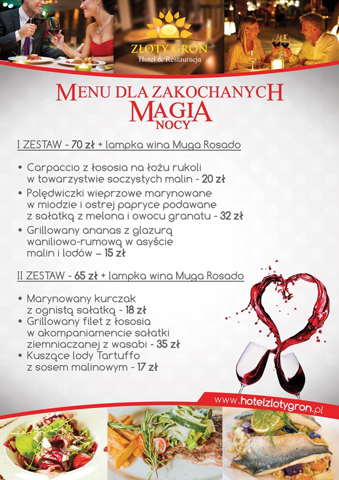 Hotel & Restauracja Złoty Groń zaprasza na niepowtarzalny, romantyczny wieczór przy muzyce na żywo i świecach. Wyjątkowa atmosfera, pochodnie, specjalnie dobrane menu, to oferta dla wszystkich par, także tych zakochanych nie od dziś :-)