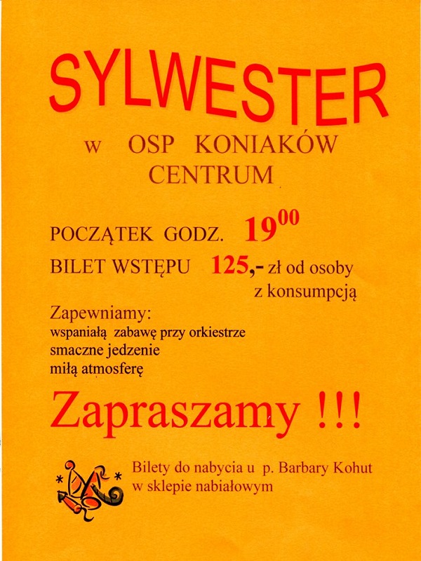 Serdecznie zapraszamy na tradycyjnego Sylwestra w koniakowskiej strażnicy. Cena 125 zł od osoby. Muzyka na żywo.